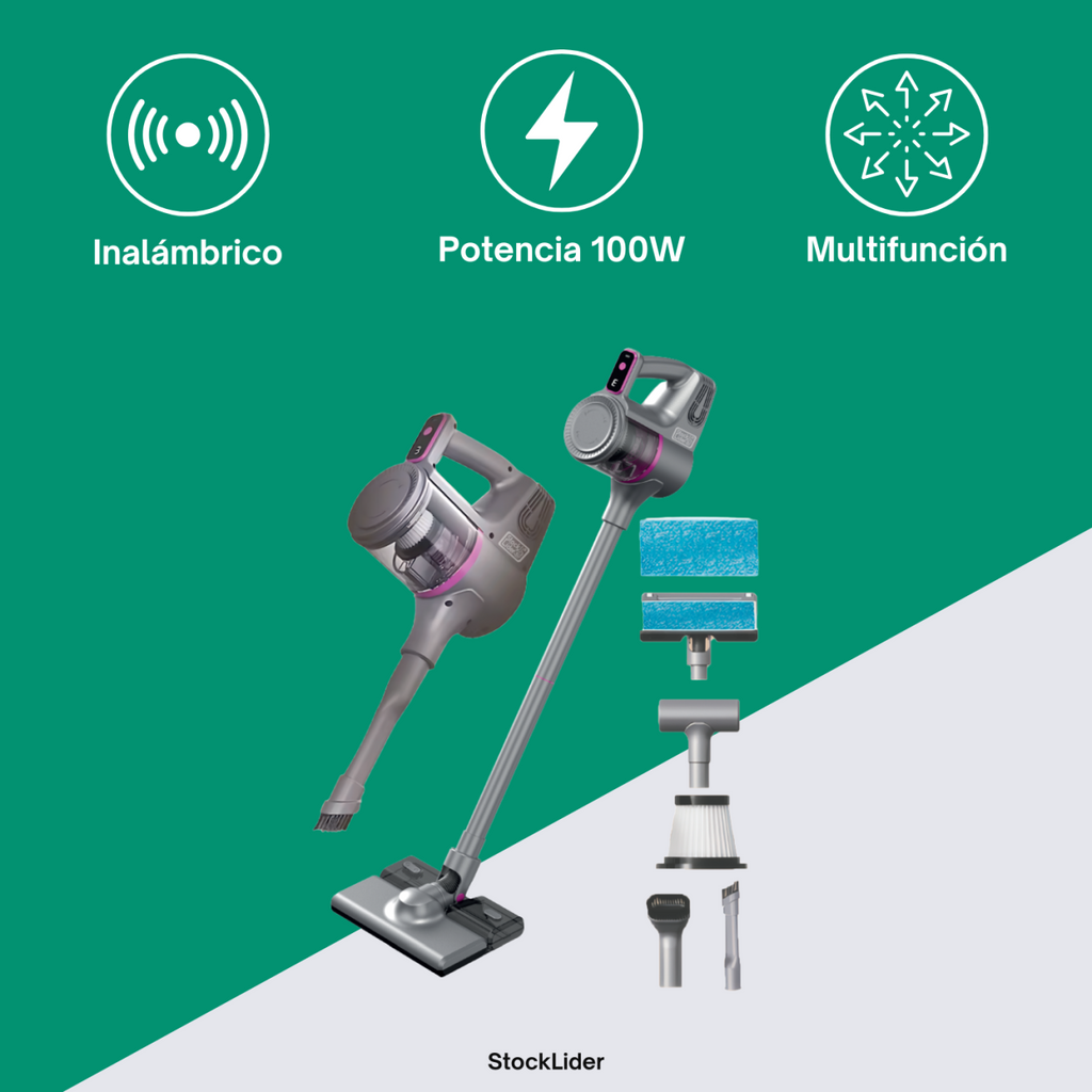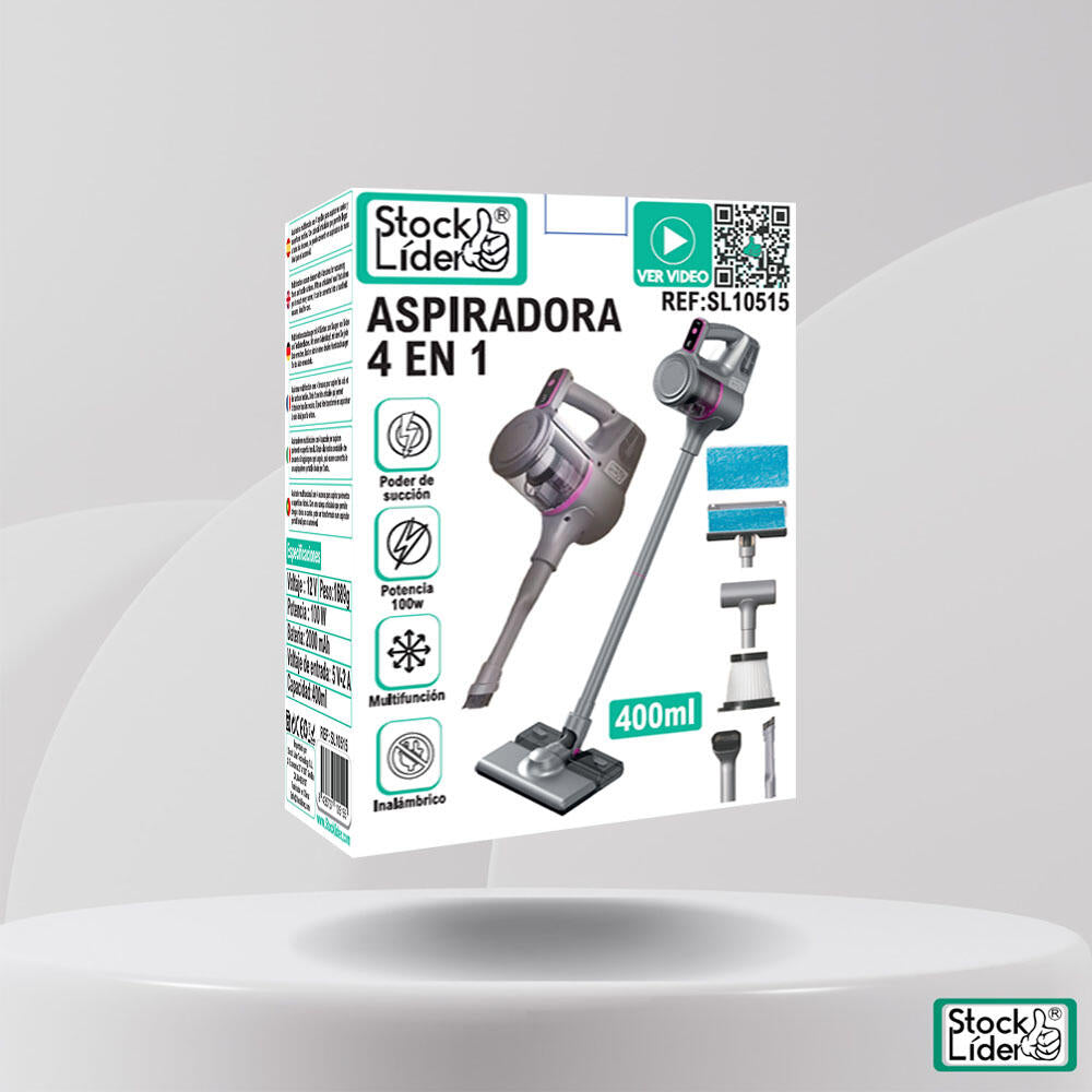 La aspiradora multifunción 4 en 1 de StockLider es la solución definitiva para mantener tu hogar impecable sin esfuerzo. Gracias a sus 100W de potencia real y a su diseño inalámbrico y ergonómico, podrás aspirar cualquier rincón, desde suelos duros hasta alfombras, con total comodidad. Su batería recargable de 2000 mAh y su capacidad de 400 ml te garantizan sesiones de limpieza sin interrupciones.